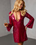 This is the dress you wear when you want the night to remember you. The After Burn Cut Out Sequin Mini Dress is your permission slip to be the main event. Drenched in tonal sequin embellishments, this piece catches the light with every move. The subtle stretch fit and easy pull-on styling mean you stay comfortable while looking sensational. A plunging neckline with a chic acrylic ring accent draws the eye, while dramatic bell sleeves and a classic shift silhouette complete this show-stopping look.