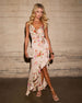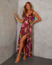 Meet your new go-to for those moments when you want to feel effortlessly chic: the Capriccio Satin Floral Ruffle Maxi Dress. Crafted from luxurious satin fabric and cascading ruffle detail adds a touch of whimsy and movement, making every step you take a graceful one. Perfect for a sunlit brunch, a romantic date night, or an elegant garden party, this maxi dress is all about celebrating life’s beautiful moments.