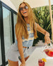 Meet the Carmena Contrast Knit Sweater, your new go-to for beach breezes, golden hour strolls, and post-sunset cocktails. With its soft knit feel and bold contrast stripe design, this sweater strikes the perfect balance between laid-back and pulled-together. The V-neckline adds a flirty, open feel while ribbed trim gives it a polished edge. Toss it on over a bikini, or pair it with denim and slides for an effortlessly cool look.