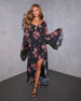 The Chapel Glow Printed Maxi Dress is pure magic, made for unforgettable evenings and special celebrations. Its lightweight floral crepe fabric flows beautifully, while dramatic bell sleeves add a touch of bohemian romance. A ruffle bib neckline and a daring bust cut-out create a stunning focal point. The open back with its delicate tie closure and a slit detailed with cascading ruffles ensure you make a breathtaking exit.