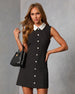 Meet the Connery Contrast Collar Mini Dress, the little black dress’s chic, unexpected cousin who shows up with satin flair and sparkling attitude. Made from structured crepe jersey, this shift silhouette holds its shape while keeping your look effortlessly polished. The satin contrast collar adds a sharp, modern edge, and crystal-embellished buttons bring just the right touch of sparkle to steal the spotlight.