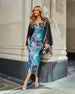 Bring the heat to your winter nights out with the Delora Printed Mesh Strapless Midi Dress. This sultry, mesh midi dress features a cutout, strapless neckline with boning to define the silhouette. A back hem slit allows for movement and adds interest.