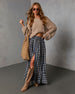 When the air turns crisp and the leaves flirt with fiery hues, the Gesibella Ruffle Hem Plaid Maxi Skirt steps in to steal the spotlight. Featuring a rich linen jersey fabric with a timeless plaid design, this skirt brings cozy sophistication to your seasonal wardrobe. The smocked waistband with a tied accent offers a flattering fit, while front loop button closures add a playful edge.