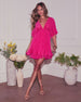 A playful yet sophisticated showstopper can be found right here with the Happy Vibes Plunging Neckline Mini Dress. Featuring a pleated semi-sheer fabric overlay with a subtle sheen, this dress catches the light in all the right ways. The plunging neckline adds a daring touch, while the draped pleated sleeves and ruffle hem create a flowy, feminine silhouette. Whether you’re headed to a garden party or a rooftop brunch, this dress delivers major feel-good energy.