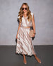 Serving cool-girl energy with a twist, meet The Kinara V Neck Top. Designed in sleek crepe satin with an abstract stripe print, this top features a surplice front that drapes just right and a subtle elastic bubble hem that adds shape without the squeeze. The high-low silhouette gives it that easy flow, making it perfect for everything from rooftop drinks to gallery strolls. Pair it with the matching Kinara Midi Skirt (sold separately) for an elevated set that does all the work for you.