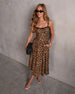 Make room in your wardrobe, the Louna Leopard Fit And Flare Midi Dress has officially entered the chat. This leopard fit-and-flare midi dress is your ticket to turning heads with a boned corset-style bodice that snatches the waist and a chic lace-up back, it's equal parts sultry and sweet. The ruffle lace trim adds a flirty touch, while adjustable straps let you find your perfect fit. Finished with faux front button details for a vintage twist, Louna is ready for date nights meant to be remembered.