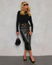 When your outfit needs to speak louder than words, the Ravan Leather Midi Skirt steps up with unapologetic edge and sleek sophistication. Made from rigid leather fabric, this skirt commands attention with its sharp silhouette and a daring slit that teases just enough. Chic meets bold in this modern classic, because who says timeless can’t have a little attitude?