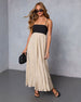 The Norrah Color block Empire Maxi Dress is here to keep your pre-fall look equal parts bold, feminine, and fun. With its chic color blocking on breezy crepe jersey, this maxi brings that effortless “oh this? I just threw it on” energy. The empire waist flatters while adjustable straps let you find your perfect fit, and a smocked back panel keeps things comfy through golden hour and beyond. The rigid fabric holds its shape, while the flowy silhouette adds movement with every step.