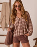 The Pecan Bliss Plaid Lace Up Peasant Top is giving cozy cottage charm with a fashion-forward twist. Designed in airy crinkle plaid with a softly tailored fit, this pre-fall fave hits that perfect sweet spot between relaxed and refined. The lace-up front tie neckline adds a romantic touch, while blouson sleeves with elastic cuffs bring a little volume and drama to your everyday look.