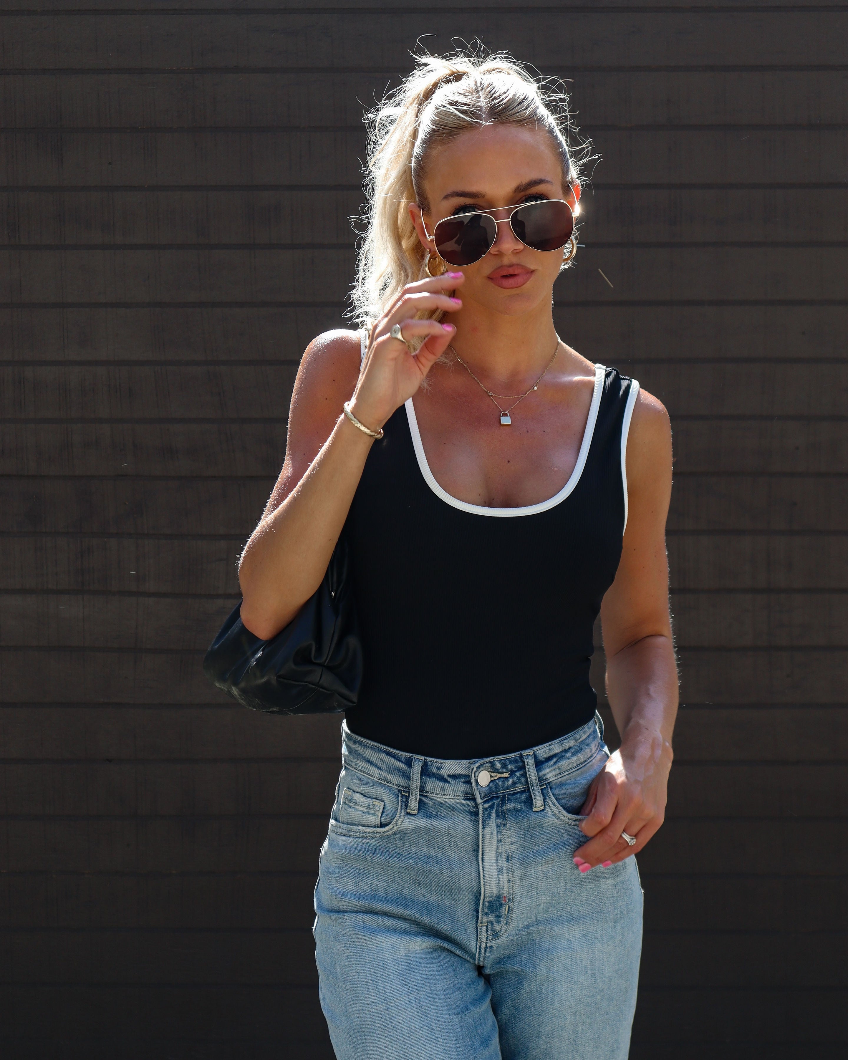 Classic and fitted, the Roz Ribbed Bodysuit features a scoop neckline and is made from a stretchy, ribbed fabrication. We love the contrast trim along the neckline and straps! Pair it up with a pair of trousers or cargo pants.