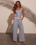 The Sarahphina Striped Wide Leg Pants bring breezy charm with a modern twist. Made from airy seersucker and finished with an easy pull-on elastic waistband, these pants are made for days when looking chic feels effortless. The soft stripes keep it classic, while a dainty mini bow at the front adds just the right touch of feminine flair. Pair them with the matching Sarahphina Striped Sweetheart Tank for a polished two-piece set.Seersucker fabric