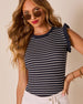 Flirty, easy, and ready for everything from beach boardwalks to rooftop spritzes the Sindee Striped Ruffle Sleeve Top can be found. Made from soft ribbed knit in a timeless stripe pattern, this top brings texture, movement, and a hint of flounce with its fluttery ruffle sleeves. The close fit gives you that “tucked-in but comfy” look, no styling stress required.