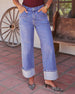 The Stylist Stretch Wide Cuffed Jeans are here to level up your denim game. Made in subtle stretch denim that moves with you, they feature light whiskering for that lived-in feel and an exaggerated frayed cuff that makes every step feel styled. The relaxed, wide-leg fit gives off a model-off-duty vibe, while the cuff detail brings all the fashion editor energy.