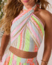 Turn up the sunshine in the Sun Washed Halter neck Abstract Top, a vibrant essential for your summer style lineup. Made from breezy linen jersey with multicolor abstract panels and hints of lurex sparkle, this top is all about that carefree glam. The crisscross halter neck tie adds a playful, flattering twist, while the smocked back panel gives you a comfy, stay-put fit. Pair it with the matching Sun Washed Abstract Wide Leg Pants (sold separately) for a bold head-to-toe moment.