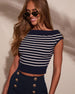 The Sunski Striped Off The Shoulder Top is where laid-back meets luxe. Made from soft midweight knit jersey fabric, this top delivers effortless style with its chic off-the-shoulder design. The subtle etched button accents at the sleeves add a touch of sophistication, perfect for your modern, classic look. Whether you're brunching with friends or strolling the boardwalk, the Sunski top's nautical-inspired stripes bring a fresh, Americana twist to your ensemble.