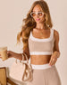Say hello to your new go-to top for looking effortlessly put together, the Tricia Contrast Crop Top. Made from soft ribbed jersey, it features sleek contrast trim that gives this simple silhouette a pop of standout style. Fitted but comfy, it's perfect for everything from morning coffee runs to golden hour hangs. Pair it with the matching Tricia Contrast Waist Wide Leg Pants (sold separately) for a coordinated moment that feels totally relaxed but still on point.