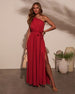 Feel the breeze and embrace chic details and an easygoing vibe with the Warm Breeze Waist Tie Maxi Dress. Crafted from lightweight crepe fabric, this dress flows gracefully, offering a relaxed yet elevated silhouette. The one-shoulder styling adds a touch of sophistication, while the detachable braided waist tie accentuates your natural shape. Dual side seam slits add just the right amount of movement and allure, perfect for strolling along the beach or enjoying sunset cocktails.